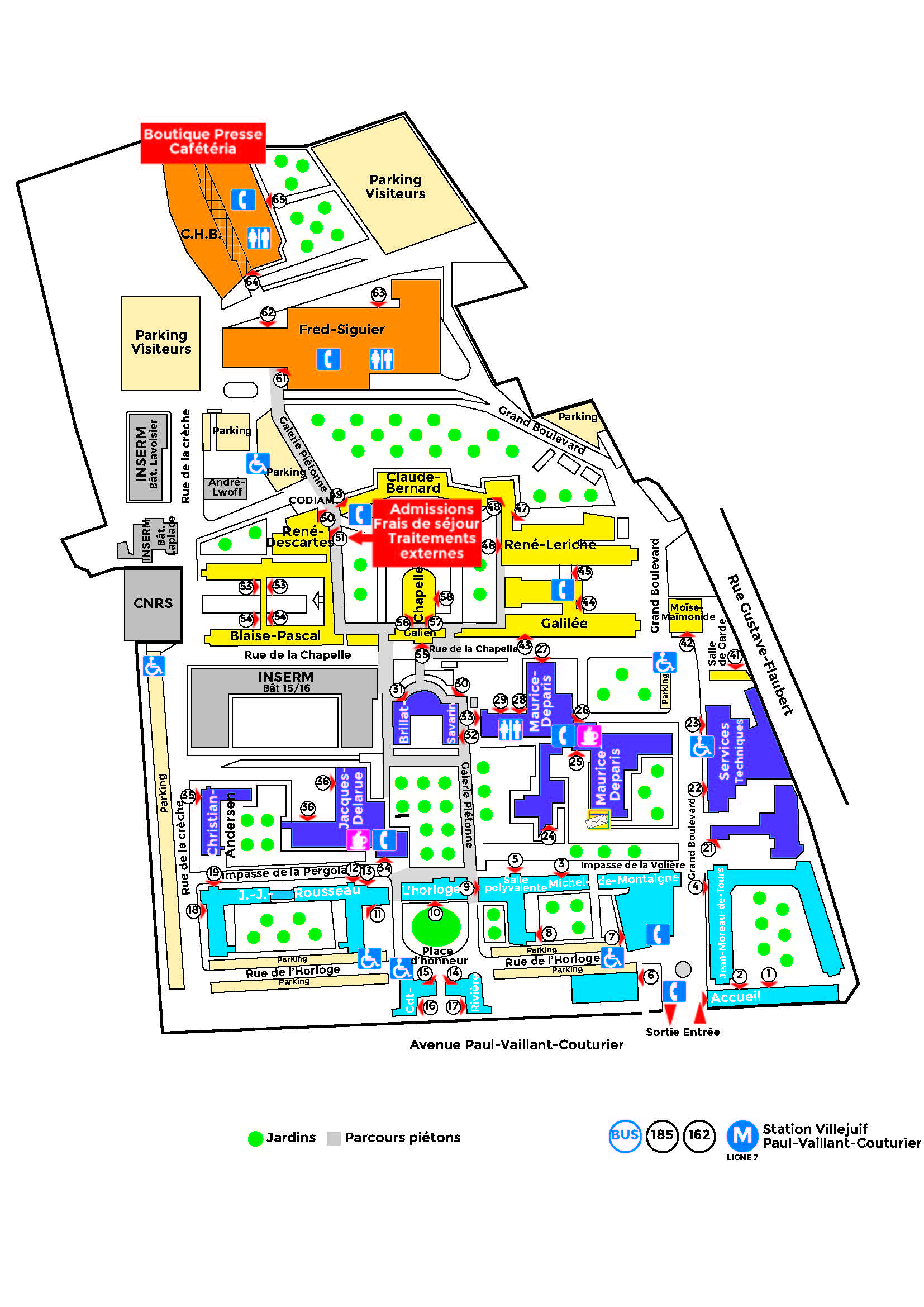 Nationale 7, puis RD 61 direction Montrouge. L’accès en véhicule est autorisé pour les patients consultants munis de leur convocation ainsi que les usagers avec un titre d’invalidité. Accès en véhicule non autorisé pour les visiteurs.