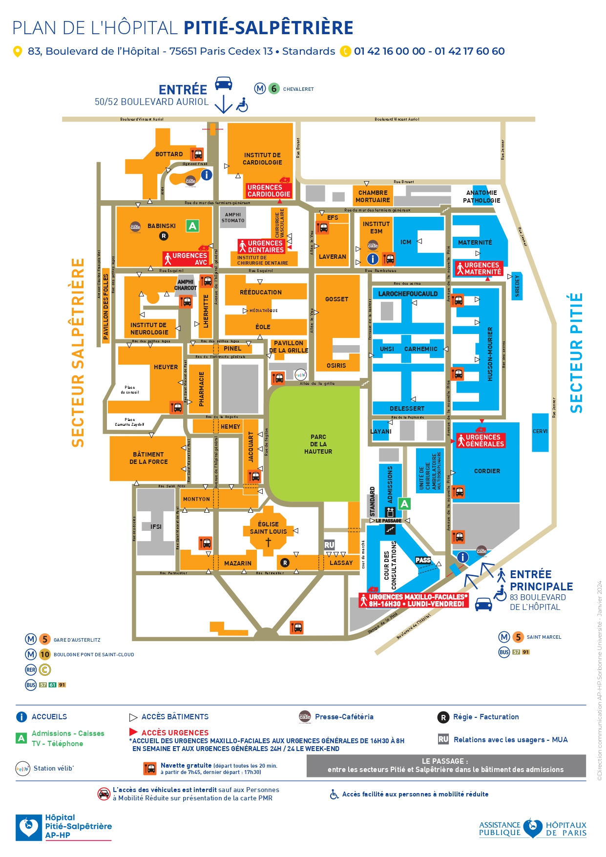 L’accès « Pitié » 83, bd de l’hôpital est ouvert 7j/7 et 24h/24 pour les véhicules autorisés et les piétons.47-83 boulevard de l'Hôpital
