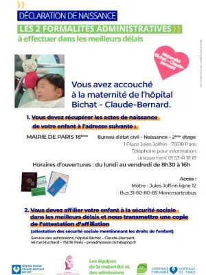 Pour une inscription à la maternité de l'hôpital Bichat - Claude-Bernard, cliquez et remplissez le formulaire de demande.