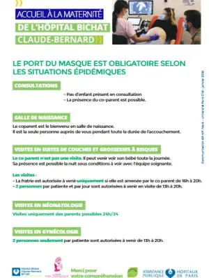 Lors des visites à la maternité, le port du masque est obligatoire. Durant le séjour à la maternité certaines consignes sont à respecter.