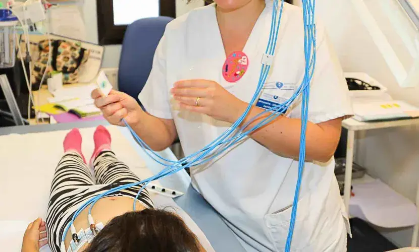 - Cardiologiques : échocardiographies fœtales, mesure de la vitesse de l’onde de pouls et du baroréflexe (bilan des hypertensions artérielles)